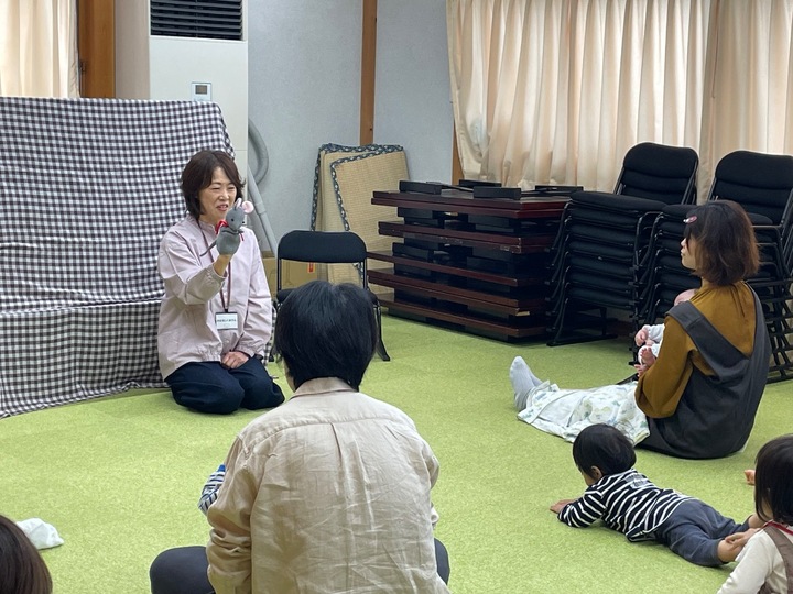 コドモトおはなし会では、季節に合わせた絵本の読み聞かせやわらべうた、手袋人形、パネルシアターなどを行っていて、まだ字が読めない赤ちゃんでも、目や音でおはなし会をたのしむことができます。
