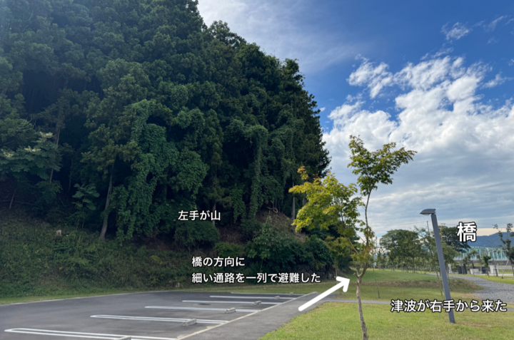 その道は一見すると避難先としてふさわしいように思えたかもしれません。しかし、徒歩で津波から逃げるには距離がありすぎ、適切なルートではありませんでした。