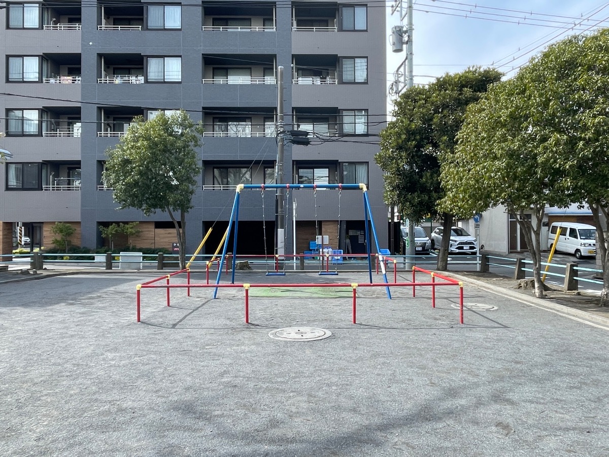 通りに面した遊具も沢山ある公園