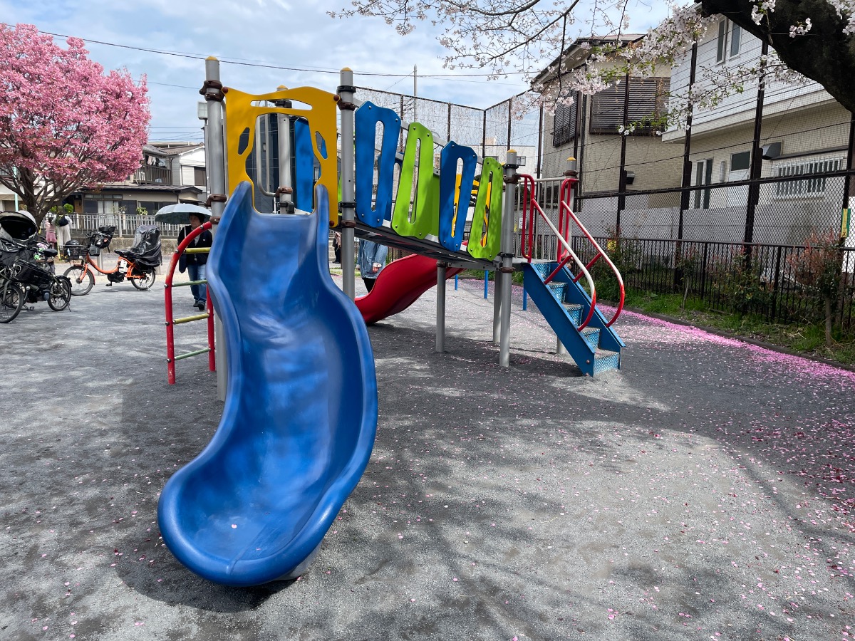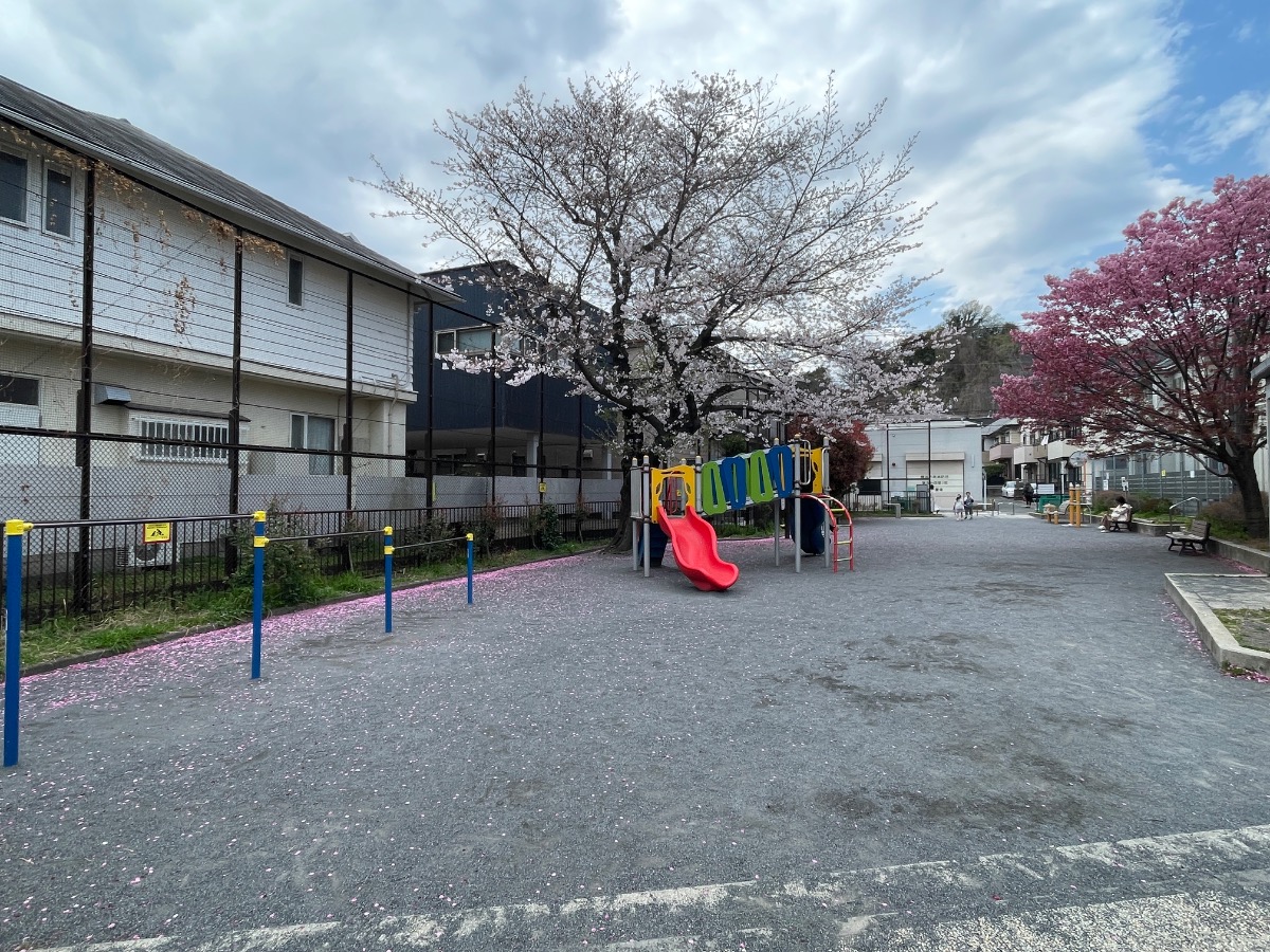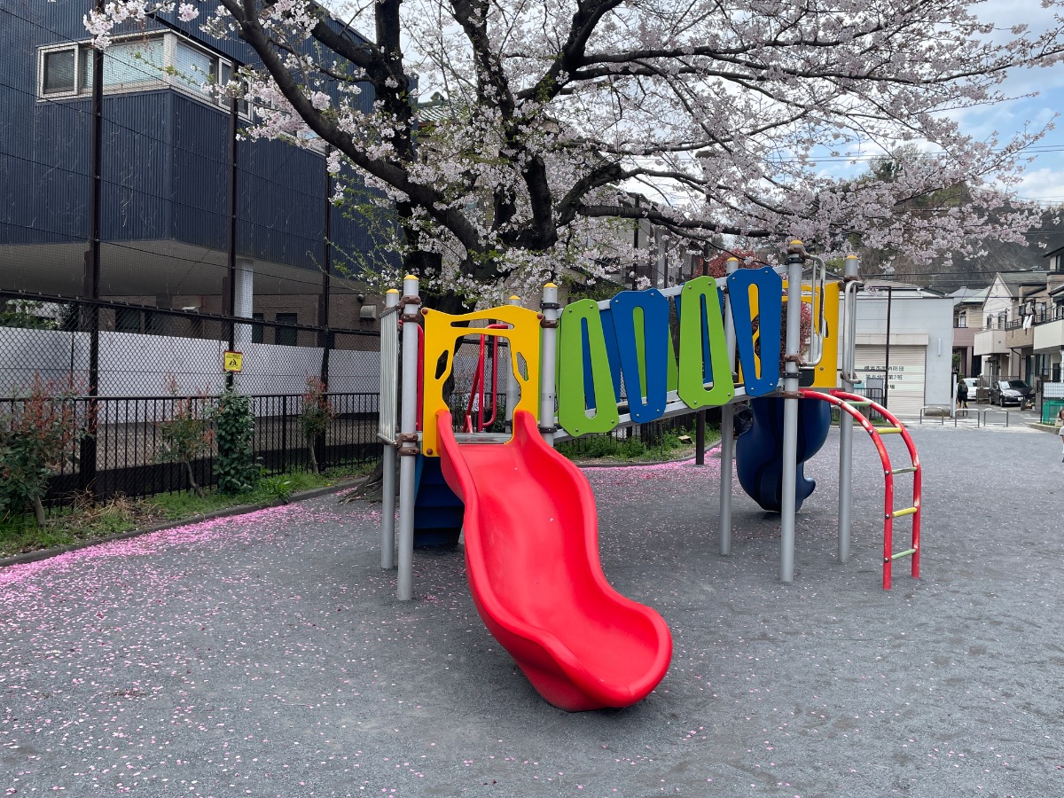 公園内には古い桜の木が立っています。大岡川に隣接しているため、子どもが好きな水面の様子や魚、水鳥を見ることもできます。