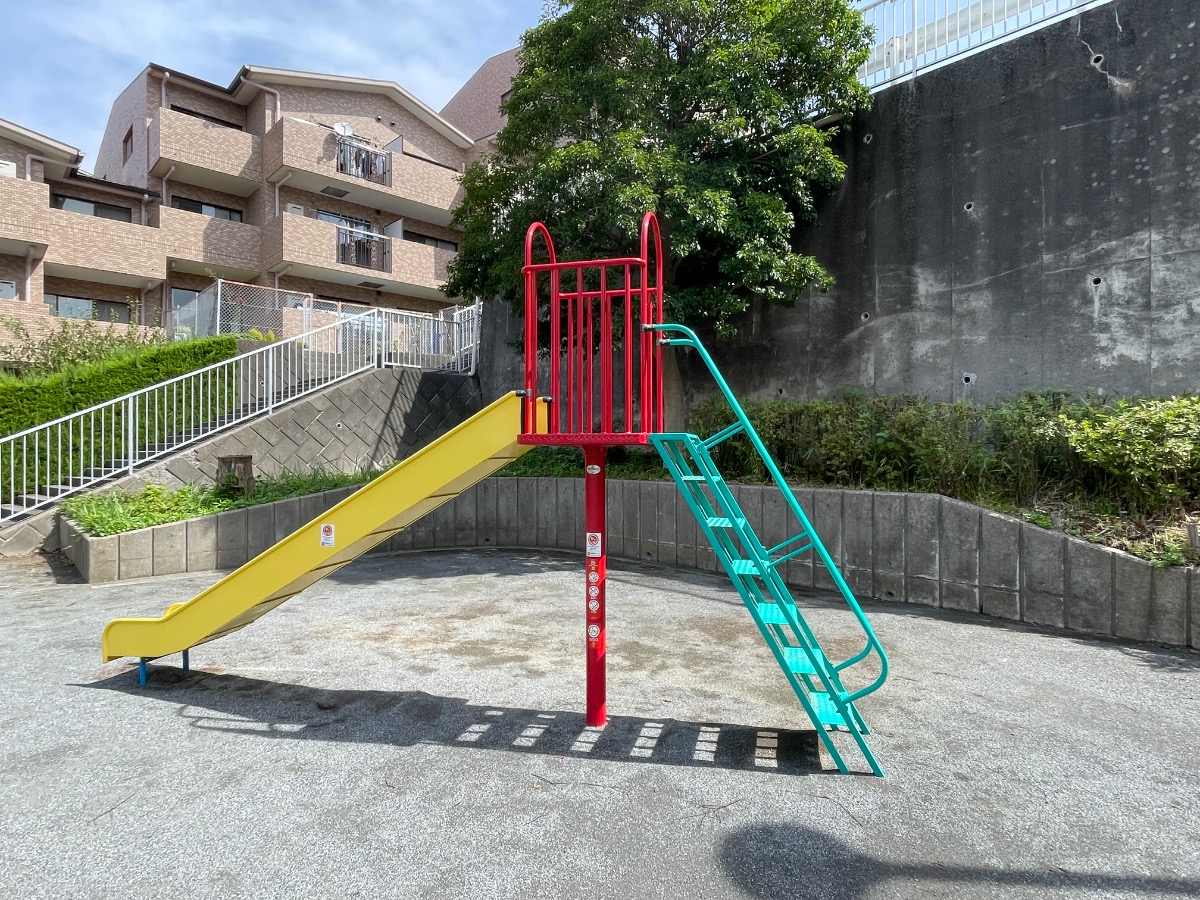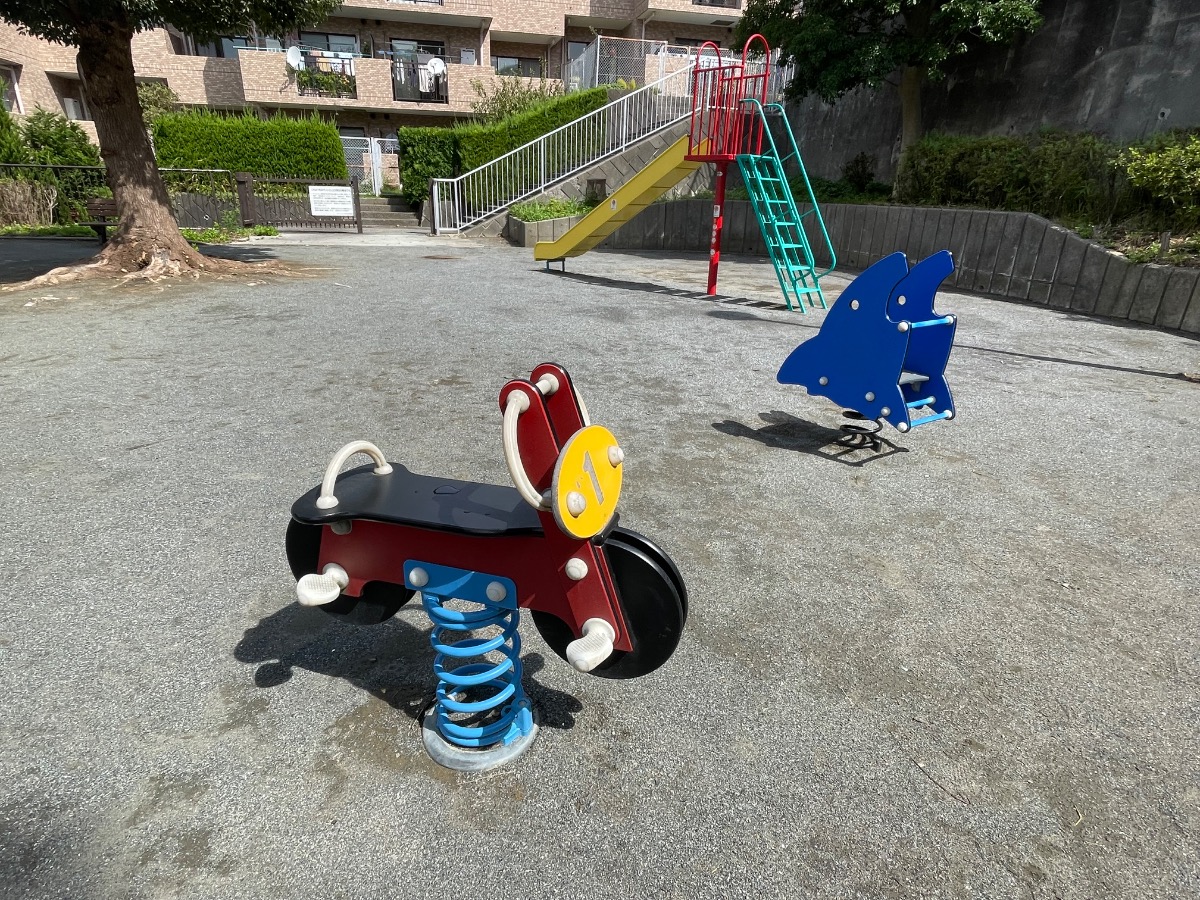 マンションに囲まれた場所にあり、とても静かな公園です。小さなお子さんでも楽しめそうです。また、うんていもあり、小学生から小さい子まで遊具で楽しく遊べそうです。
