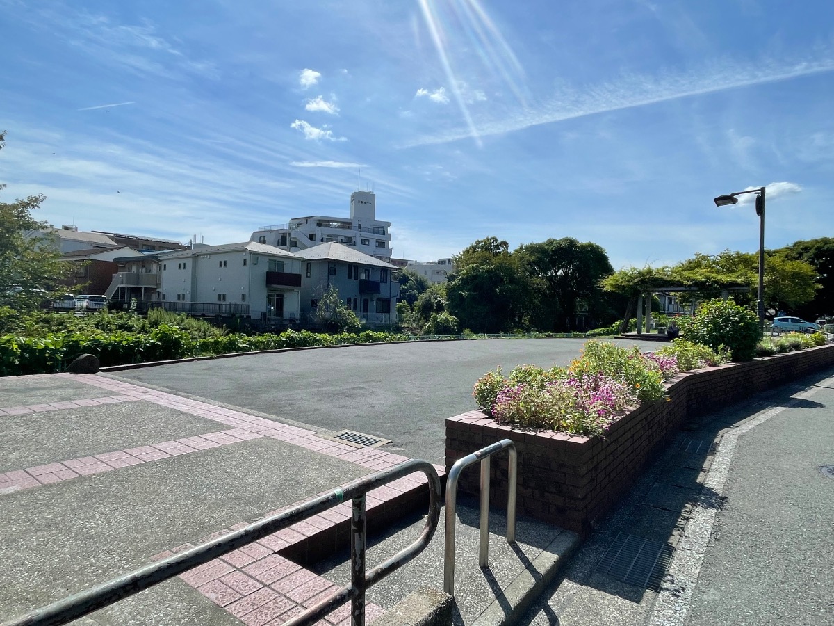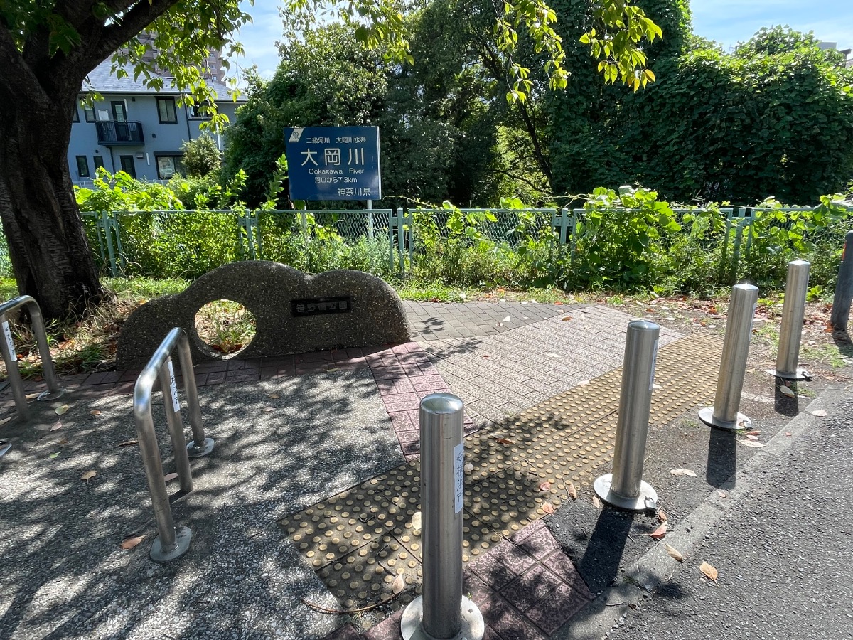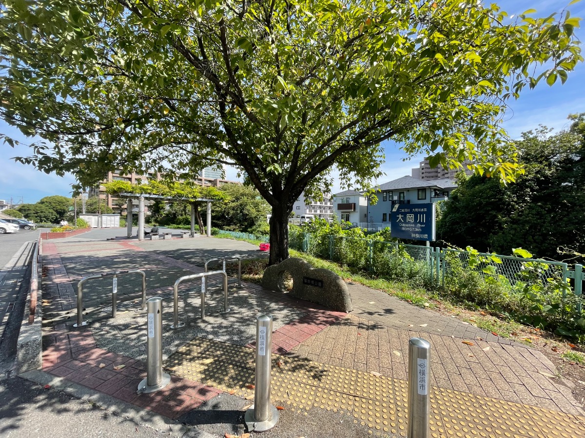大岡川沿いにあります。遊具はありませんが、ちょっと休憩中、川を覗くと、魚や鴨が泳いでいることも!!